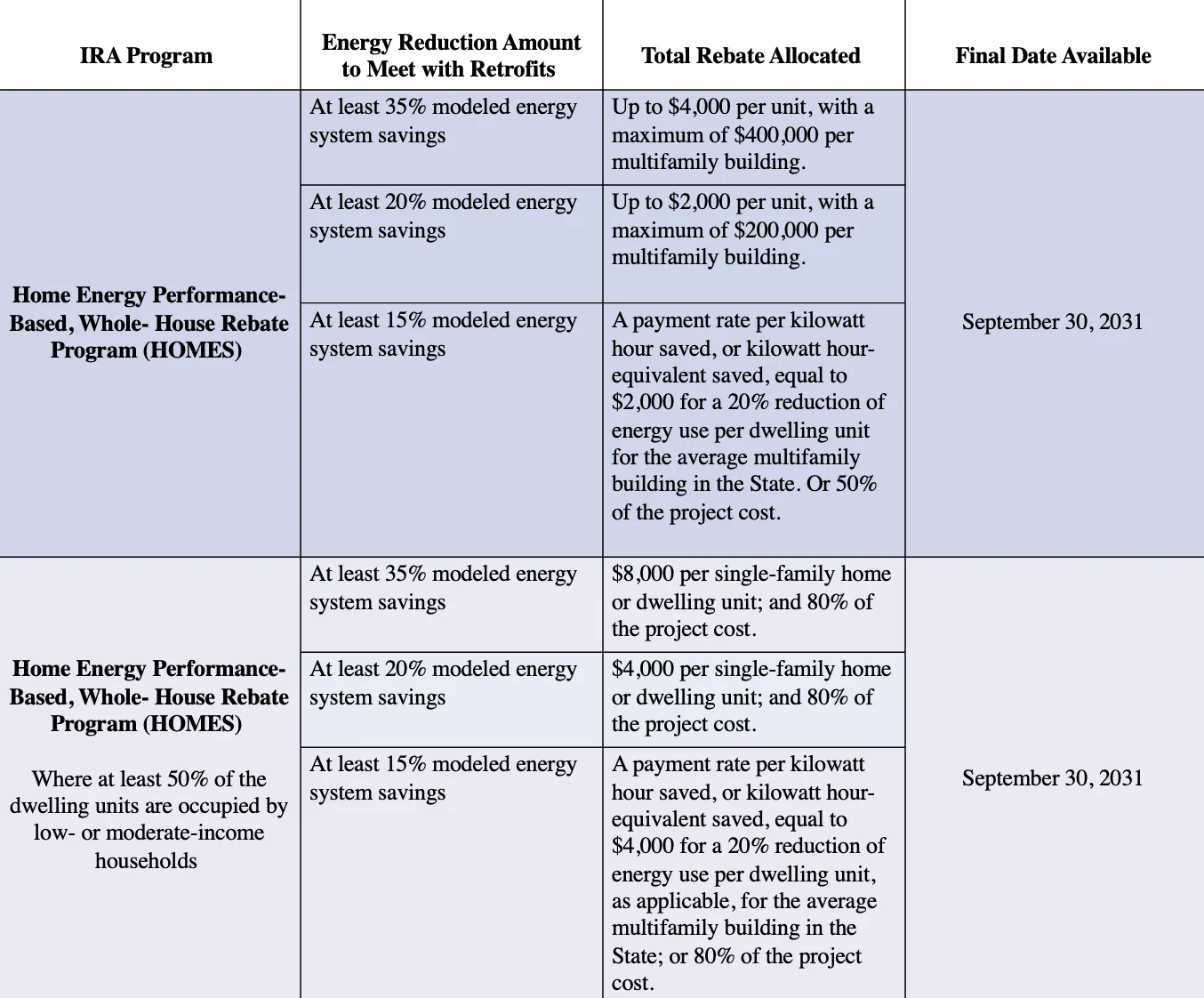 One of the rebates available is the Home Energy Performance-Based, Whole-House Rebate Program (HOMES), which provides rebates to multifamily building owners and aggregators to reduce the energy consumption of their properties.