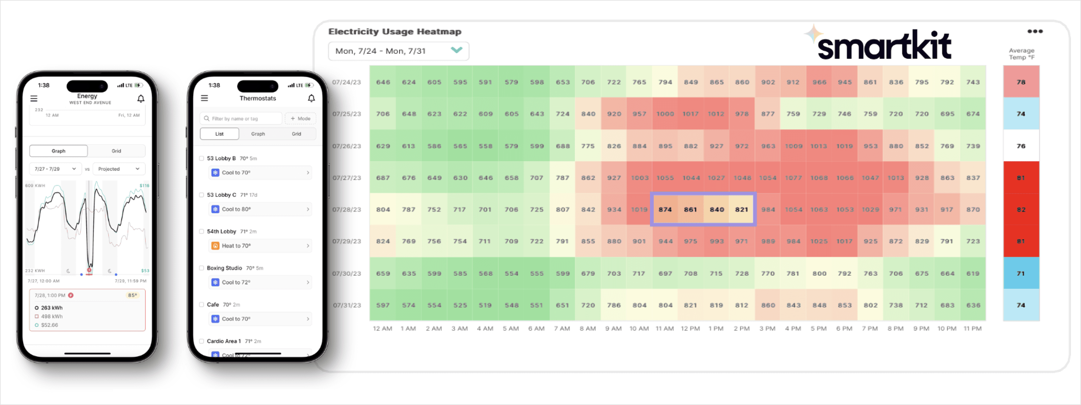Logical Buildings worked with Mickey McCreesh, Resident Manager, to design building-specific, energy-saving actions to take during times of peak demand on the electric grid. During summer peak demand events, these actions generated significant emissions reductions and nearly $25,000 in total gross revenue. Energy reductions during the July 28th event (11 am-3 pm) can be seen in the heatmap below.